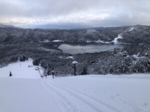 - パノラマコース(中・上級): 全長1,200m。山頂から阿寒湖に向かって滑り降りるメインコース。美しい景色と共に、変化に富んだ滑りを楽しめます。