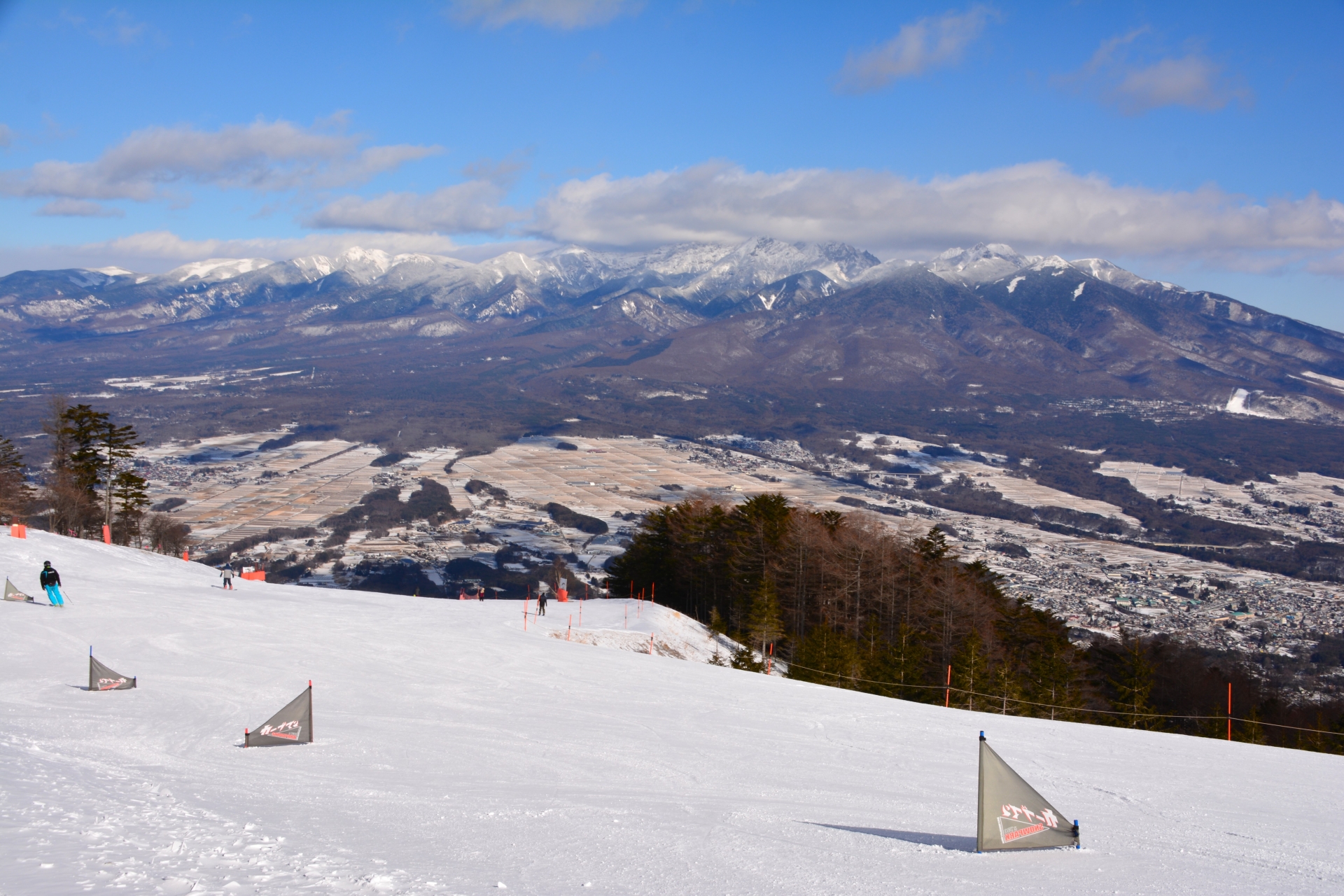 特に際立っているのは、8人乗りゴンドラ「パノラマ」で一気に標高1,780mの山頂エリアまでアクセスできる点です。山頂からは、その名の通り富士山をはじめ、南アルプス、中央アルプス、そして八ヶ岳連峰を望む360度のパノラマ大絶景が眼下に広がります。この絶景を楽しみながら滑り降りる約3,000mのロングクルージングコースは、このスキー場の代名詞とも言えるでしょう。