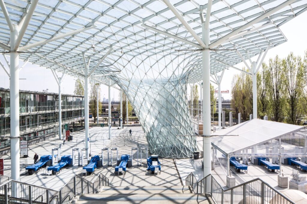 フィエラ・ミラノ自体は巨大な「箱」ですが、周辺や会場内にも楽しみがあります。
