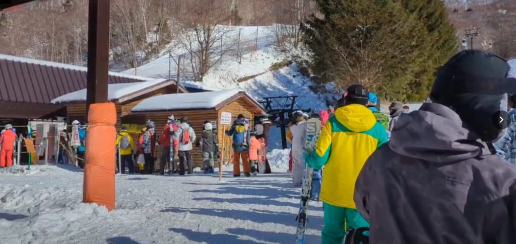 このゴンドラは時間によってはジャイアント側から来る人達と、東館山から来る人が集まってしまう場合があり、混雑している時が多々あります。以前のクワッドリフトの時よりも輸送力が落ちている気がします。